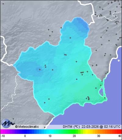 | Murcia - San Antón | 42 | 13,4 | 21,0 | 8,3 | 78 | 90 | 46 | 1.011 | 1.013 | 1.009 | 1 WSW | 17 | - | 101,4 | |