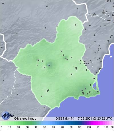 | 17-06-2021 | | | Máx. | Mín. | | | Temperatura | 30,0 | 18,9 | °C | | Humedad | 93 | 48 | % | | Viento | 27 | n/a | km/h | | Presión | 1.013 | 1.010 | hPa | | Precipitación | 0,0 | mm |