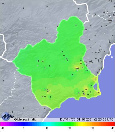 | 31-10-2021 | | | Máx. | Mín. | | | Temperatura | 30,2 | 18,4 | °C | | Humedad | 75 | 38 | % | | Viento | 35 | n/a | km/h | | Presión | 1.018 | 1.015 | hPa | | Precipitación | 0,0 | mm |