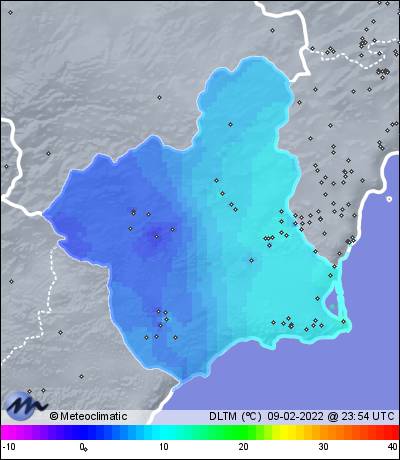 | 09-02-2022 | | | Máx. | Mín. | | | Temperatura | 15,7 | 9,4 | °C | | Humedad | 91 | 63 | % | | Viento | 18 | n/a | km/h | | Presión | 1.036 | 1.032 | hPa | | Precipitación | 0,0 | mm |