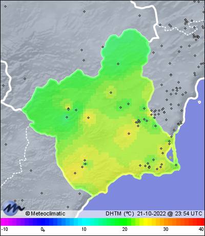 | 21-10-2022 | | | Máx. | Mín. | | | Temperatura | 23,9 | 19,8 | °C | | Humedad | 98 | 73 | % | | Viento | 24 | n/a | km/h | | Presión | 1.020 | 1.017 | hPa | | Precipitación | 0,0 | mm |