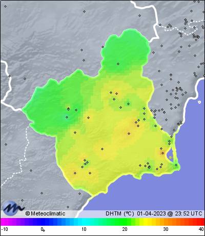| 01-04-2023 | | | Máx. | Mín. | | | Temperatura | 28,8 | 19,3 | °C | | Humedad | 56 | 25 | % | | Viento | 25 | n/a | km/h | | Presión | 1.020 | 1.013 | hPa | | Precipitación | 0,0 | mm |