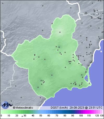 | 29-08-2023 | | | Máx. | Mín. | | | Temperatura | 30,4 | 22,5 | °C | | Humedad | 76 | 40 | % | | Viento | 29 | n/a | km/h | | Presión | 1.018 | 1.012 | hPa | | Precipitación | 0,0 | mm |