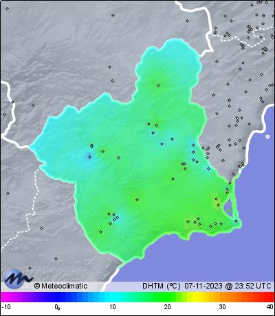 | 07-11-2023 | | | Máx. | Mín. | | | Temperatura | 22,0 | 10,4 | °C | | Humedad | 69 | 31 | % | | Viento | 35 | n/a | km/h | | Presión | 1.019 | 1.014 | hPa | | Precipitación | 0,0 | mm |