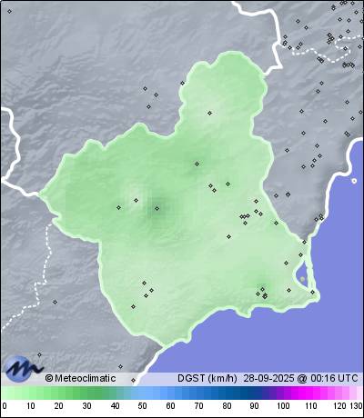 | 27-09-2025 | | | Máx. | Mín. | | | Temperatura | 32,6 | 17,4 | °C | | Humedad | 81 | 28 | % | | Viento | 28 | n/a | km/h | | Presión | 1.020 | 1.016 | hPa | | Precipitación | 0,0 | mm |
