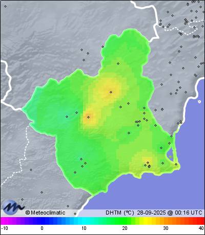| 27-09-2025 | | | Máx. | Mín. | | | Temperatura | 31,0 | 16,1 | °C | | Humedad | 94 | 38 | % | | Viento | 18 | n/a | km/h | | Presión | 1.022 | 1.017 | hPa | | Precipitación | 0,0 | mm |