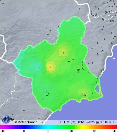 | 02-10-2025 | | | Máx. | Mín. | | | Temperatura | 30,2 | 17,0 | °C | | Humedad | 83 | 48 | % | | Viento | 16 | n/a | km/h | | Presión | 1.025 | 1.017 | hPa | | Precipitación | 0,0 | mm |