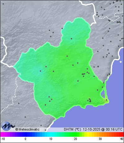 11-10-2025 | | Máx. | Mín. | | Temperatura | 23,2 | 16,6 | °C | Humedad | 95 | 63 | % | Viento | 35 | n/a | km/h | Presión | 1.022 | 1.019 | hPa | Precipitación | 0,0 | mm |