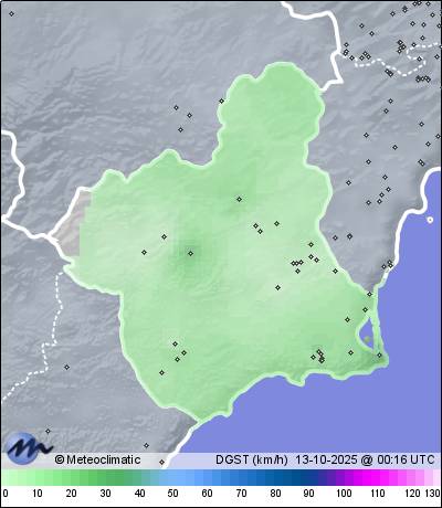 12-10-2025 | | Máx. | Mín. | | Temperatura | 24,7 | 17,1 | °C | Humedad | 100 | 79 | % | Viento | 37 | n/a | km/h | Presión | 1.023 | 1.019 | hPa | Precipitación | 0,0 | mm |