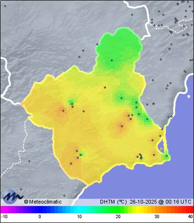 | Lo Pagan-S. Pedro Pinatar | 13 | 25,4 | 26,0 | 17,9 | 80 | 95 | 73 | 1.016 | 1.020 | 1.016 | 6 ESE | 11 | - | 359,7 | |