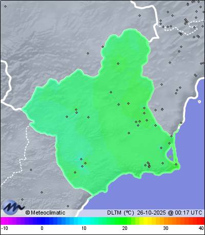 | Lo Pagan-S. Pedro Pinatar | 13 | 25,4 | 26,0 | 17,9 | 80 | 95 | 73 | 1.016 | 1.020 | 1.016 | 6 ESE | 11 | - | 359,7 | |