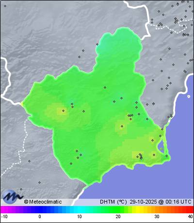 | 28-10-2025 | | | Máx. | Mín. | | | Temperatura | 23,0 | 13,7 | °C | | Humedad | 95 | 63 | % | | Viento | 15 | n/a | km/h | | Presión | 1.025 | 1.016 | hPa | | Precipitación | 0,0 | mm |