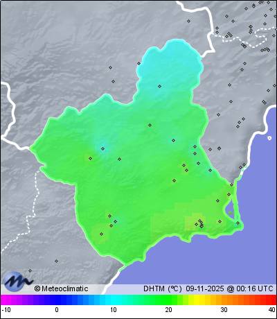 | Dolores (Torre Pacheco) | 40 | 19,8 | 19,8 | 12,0 | 49 | 90 | 48 | 1.013 | 1.014 | 1.010 | 6 NNW | 39 | - | 357,9 | |