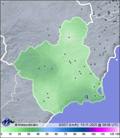 | La Manga del Mar Menor | 3 | 19,7 | 20,1 | 19,1 | 81 | 85 | 75 | 1.020 | 1.020 | 1.018 | 13 SW | 37 | - | 286,0 | |
