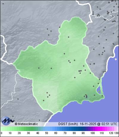 | Murcia - San Antón | 42 | 16,4 | 16,8 | 16,4 | 94 | 94 | 93 | 1.010 | 1.011 | 1.010 | 5 NNE | 7 | 1,5 | 370,2 | |