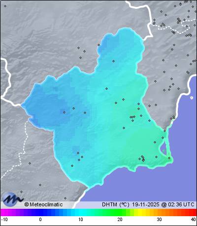 | Murcia - P.Tocinos | 43 | 12,6 | 13,7 | 12,6 | 82 | 84 | 82 | 1.016 | 1.017 | 1.016 | 7 WSW | 13 | - | 333,6 | |