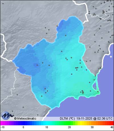 | Murcia - P.Tocinos | 43 | 12,6 | 13,7 | 12,6 | 82 | 84 | 82 | 1.016 | 1.017 | 1.016 | 7 WSW | 13 | - | 333,6 | |