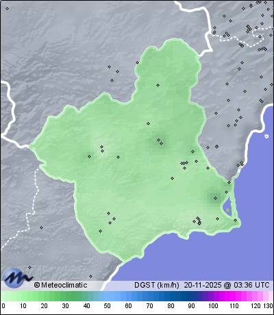 | Puerto Lumbreras | 441 | 9,5 | 10,2 | 9,2 | 68 | 70 | 66 | 1.016 | 1.017 | 1.016 | 6 NW | 13 | - | 320,0 | |