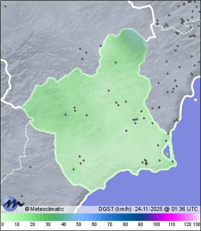 | Murcia - P.Tocinos | 43 | 12,6 | 13,5 | 12,6 | 65 | 66 | 64 | 1.019 | 1.020 | 1.019 | 7 WSW | 15 | - | 333,6 | |