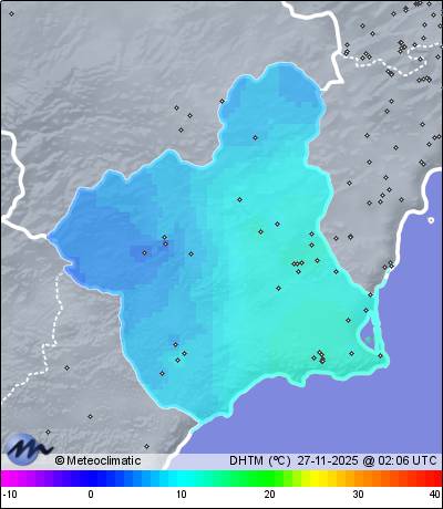 | Santomera | 41 | 11,3 | 12,0 | 11,1 | 47 | 47 | 43 | 1.021 | 1.022 | 1.021 | 10 WNW | 32 | - | 262,0 | |