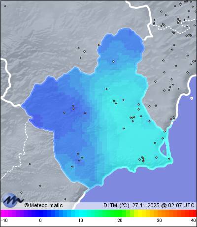| Dolores (Torre Pacheco) | 40 | 12,0 | 12,0 | 10,0 | 48 | 53 | 48 | 1.019 | 1.019 | 1.019 | 6 NNW | 22 | - | 359,2 | |