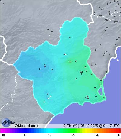 | Dolores (Torre Pacheco) | 40 | 15,9 | 15,9 | 15,4 | 68 | 70 | 68 | 1.020 | 1.020 | 1.019 | 5 NNW | 11 | - | 359,2 | |