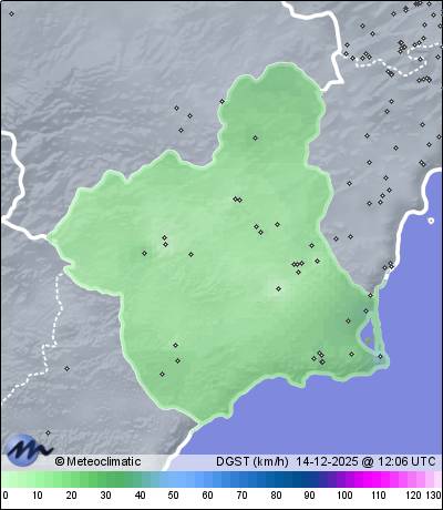 | Murcia - B.º del Progreso | 46 | 12,6 | 14,1 | 12,5 | 95 | 95 | 84 | 1.021 | 1.024 | 1.021 | 2 WNW | 7 | - | 370,6 | |