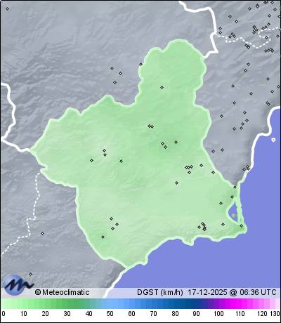 | Cartagena - Los Barreros | 42 | 10,6 | 11,6 | 10,4 | 90 | 90 | 85 | 1.016 | 1.016 | 1.013 | 1 WSW | 5 | - | 404,5 | |