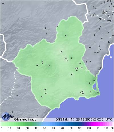 | Dolores (Torre Pacheco) | 40 | 13,6 | 13,6 | 13,3 | 85 | 87 | 85 | 1.012 | 1.013 | 1.012 | 8 ESE | 15 | - | 450,1 | |