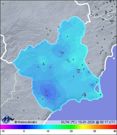 | Dolores (Torre Pacheco) | 40 | 17,1 | 20,5 | 5,3 | 76 | 88 | 50 | 1.017 | 1.023 | 1.016 | 8 WSW | 24 | - | 41,2 | |