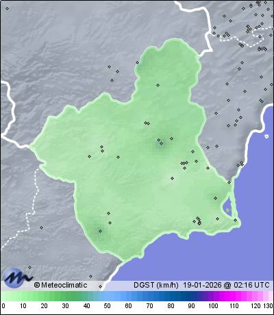 | Lorca - Torrecilla | 307 | 5,5 | 7,5 | 4,7 | 84 | 87 | 77 | 1.018 | 1.018 | 1.017 | 2 SSE | 11 | - | 42,7 | |