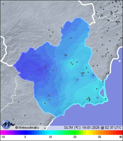 | Dolores (Torre Pacheco) | 40 | 10,6 | 10,7 | 10,0 | 74 | 77 | 74 | 1.010 | 1.010 | 1.010 | 7 NNE | 18 | - | 45,5 | |