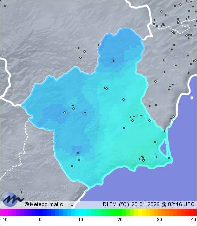 | Dolores (Torre Pacheco) | 40 | 12,3 | 12,5 | 12,2 | 64 | 65 | 64 | 1.010 | 1.010 | 1.010 | 17 NNE | 31 | - | 45,5 | |