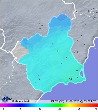 | Dolores (Torre Pacheco) | 40 | 12,5 | 13,3 | 12,5 | 59 | 59 | 49 | 1.009 | 1.009 | 1.009 | 22 NNE | 42 | - | 45,5 | |