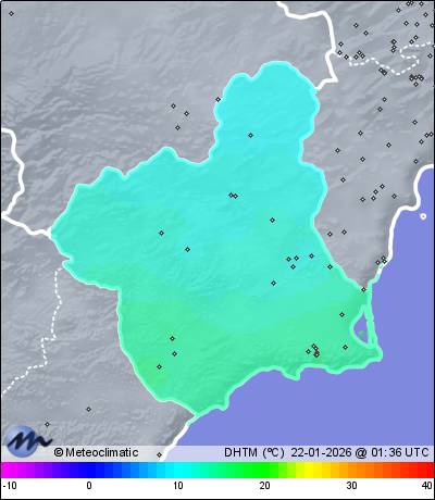| Dolores (Torre Pacheco) | 40 | 13,6 | 13,6 | 12,8 | 88 | 93 | 88 | 997 | 997 | 997 | 9 WNW | 33 | - | 46,3 | |