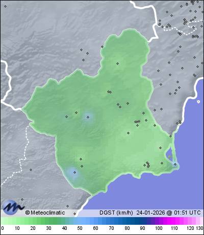 | Bullas - Rio Puente | 602 | 7,8 | 13,7 | 7,8 | 71 | 79 | 38 | 998 | 1.004 | 997 | 24 SW | 72 | - | 47,8 | |
