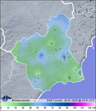 | Murcia - B.º del Progreso | 46 | 13,8 | 13,8 | 12,1 | 62 | 76 | 62 | 1.011 | 1.011 | 1.010 | 2 SW | 7 | - | 42,7 | |