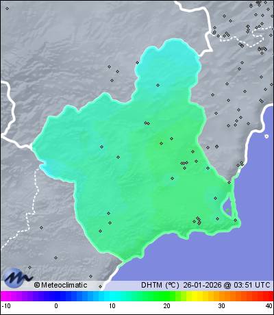 | Murcia - San Antón | 42 | 15,4 | 15,4 | 13,8 | 56 | 67 | 56 | 1.010 | 1.010 | 1.009 | 4 WNW | 20 | - | 34,8 | |