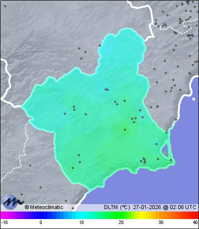 | Cehegín | 560 | 13,8 | 14,2 | 13,8 | 70 | 72 | 70 | 1.009 | 1.010 | 1.009 | 15 WNW | 34 | - | 44,6 | |
