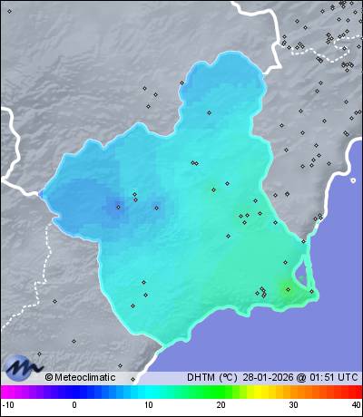 | Murcia - Centro | 70 | 12,6 | 12,8 | 12,3 | 52 | 59 | 52 | 1.008 | 1.008 | 1.007 | 7 SW | 22 | - | 46,6 | |