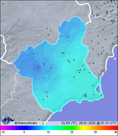 | Murcia - Centro | 70 | 12,6 | 12,8 | 12,3 | 52 | 59 | 52 | 1.008 | 1.008 | 1.007 | 7 SW | 22 | - | 46,6 | |