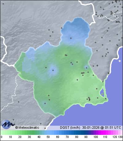 | Murcia - Centro | 70 | 18,0 | 18,3 | 17,5 | 47 | 53 | 44 | 1.010 | 1.010 | 1.009 | 3 W | 28 | - | 53,5 | |