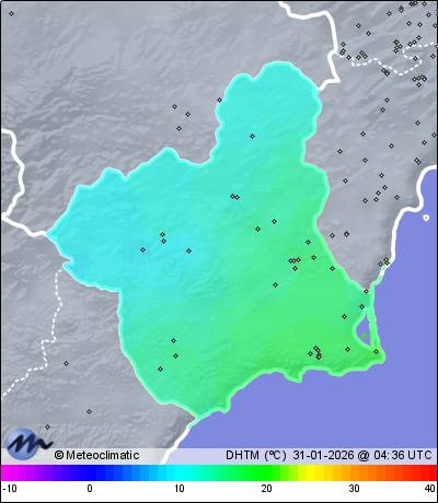 | Dolores (Torre Pacheco) | 40 | 15,3 | 15,9 | 12,9 | 62 | 66 | 57 | 1.003 | 1.003 | 1.002 | 23 NNW | 39 | - | 55,6 | |