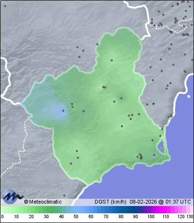 | Cartagena-U.Mediterraneo | 26 | 13,5 | 13,7 | 13,4 | 78 | 79 | 78 | 1.008 | 1.009 | 1.008 | 10 SSW | 21 | - | 47,4 | |
