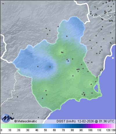 | Cartagena-U.Mediterraneo | 26 | 20,4 | 20,4 | 19,8 | 60 | 64 | 60 | 1.011 | 1.011 | 1.011 | 6 SSE | 23 | - | 47,6 | |