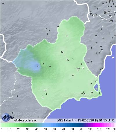 | Murcia - San Antón | 42 | 13,5 | 14,7 | 13,5 | 59 | 59 | 53 | 1.011 | 1.011 | 1.011 | 1 WSW | 7 | - | 52,6 | |