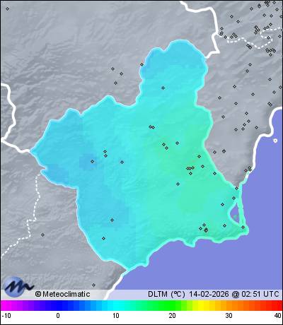 | Alquerias - Los Ramos | 42 | 13,7 | 14,2 | 13,7 | 49 | 49 | 46 | 1.000 | 1.000 | 999 | 5 WNW | 32 | - | 46,8 | |