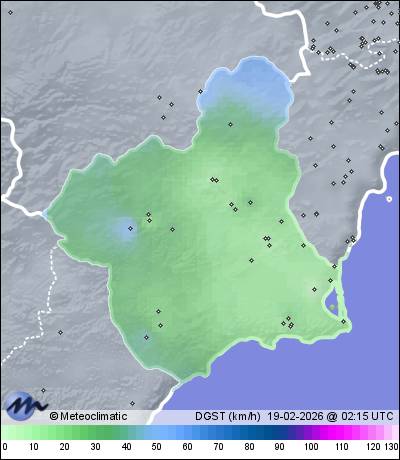 | Murcia - Torreguil | 218 | 13,7 | 13,7 | 12,1 | 58 | 66 | 58 | 1.015 | 1.016 | 1.015 | 3 WSW | 7 | - | 63,7 | |