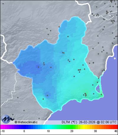 | Lo Pagan-S. Pedro Pinatar | 13 | 12,6 | 12,8 | 12,6 | 92 | 92 | 91 | 1.023 | 1.023 | 1.022 | 6 NNW | 7 | - | 87,0 | |