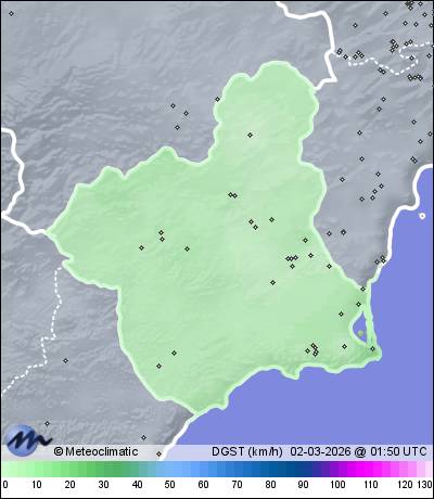| Murcia - B.º del Progreso | 46 | 10,5 | 10,5 | 10,2 | 91 | 92 | 90 | 1.022 | 1.022 | 1.022 | 2 SSW | 5 | - | 62,5 | |